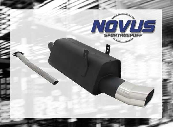 NOVUS silenciador, adequado para a série 3 da BMW E36 320i/320i-24V/323i. Tubo de escape: 135x75mm ponteiras ovais feitos de aço inoxidável. Som desportivo. Melhora o desempenho, reduz a pressão de combustão. Silencioso com revestimento em pó adicional para durabilidade.
