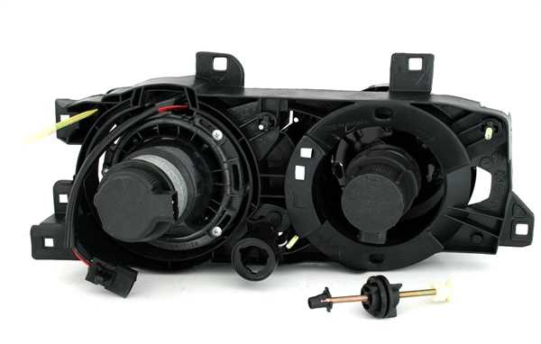 Ãptica, adequada para BMW série 5 E34, compatÃvel 2/88-12/95, série 7 E32, compatÃvel 10/86-5/94. Cor: preto. Lâmpada adequada: H1/H1 (não incluÃdo). Preparado para controle de nivelamento manual e eléctrico. Lado esquerdo, do lado do motorista.