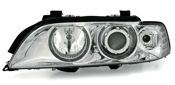 Ópticas angel eyes, adequadas para BMW série 5 E39, compatível 9/95-8/00 (carros sem Xenon). Cor: cromado.