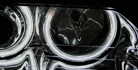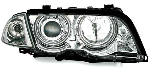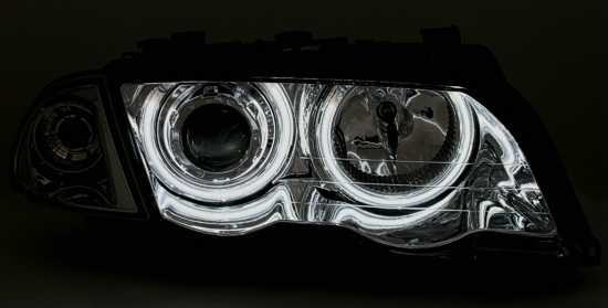 Ópticas angel eyes, adequadas para BMW série 3 E46 (apenas Limo + Touring), compatível 5/98-8/01 (apenas para veículos sem Xenon). Cor: cromado.