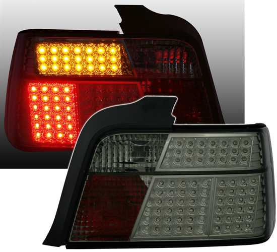Farolins em LED, adequado para BMW série 3 E36 (Limo), compatÃvel 12/90-1/98. Cor: escurecido. Reflectores adicionais instalados á parte (incluÃdo).Homologado.