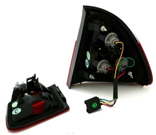 Farolins em LED, adequados para BMW série 3 E46 (apenas Touring), compatÃvel 10/99-2/05. Cor: escurecido. Reflector adicional instalado á parte. Homologado.