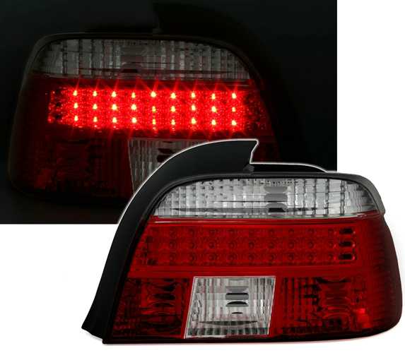 Farolins em LED, adequado para BMW série 5 E39 (Limo), compatível 11/95-8/00. Cor: vermelho e branco. Incl. lâmpadas amarelas. Reflectores adicionais instalados á parte (incluído).Homologado.