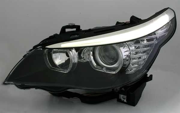 Ãpticas angel eyes, adequadas para BMW série 5 E60 + E61, compatÃvel 7/03-2/07 (apenas para veÃculos sem xenon). Cor: preto. Lâmpadas adequadas: H7/ H7/PY21W. Incl. motores para nivelamento eléctrico.Homologado.