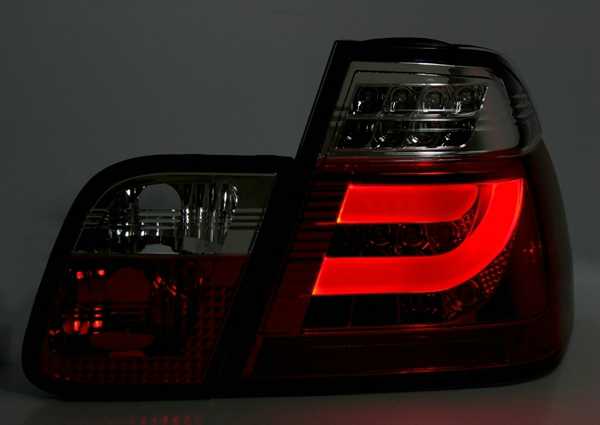 Farolins em LED, adequados para BMW série 3 E46 (apenas Limo), compatÃvel 5/98-8/01. Cor: vermelho escurecido.Homologado.