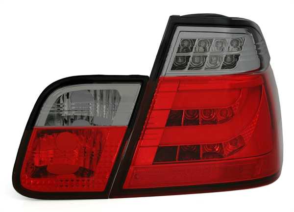 Farolins em LED, adequados para BMW série 3 E46 (apenas Limo), compatÃvel 10/01-3/05. Cor: vermelho escurecido.Homologado.