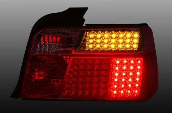 Farolins em LED, adequado para BMW série 3 E36 (Limo), compatível 12/90-1/98. Cor: vermelho e branco. Reflectores adicionais instalados á parte (incluído).Homologado.