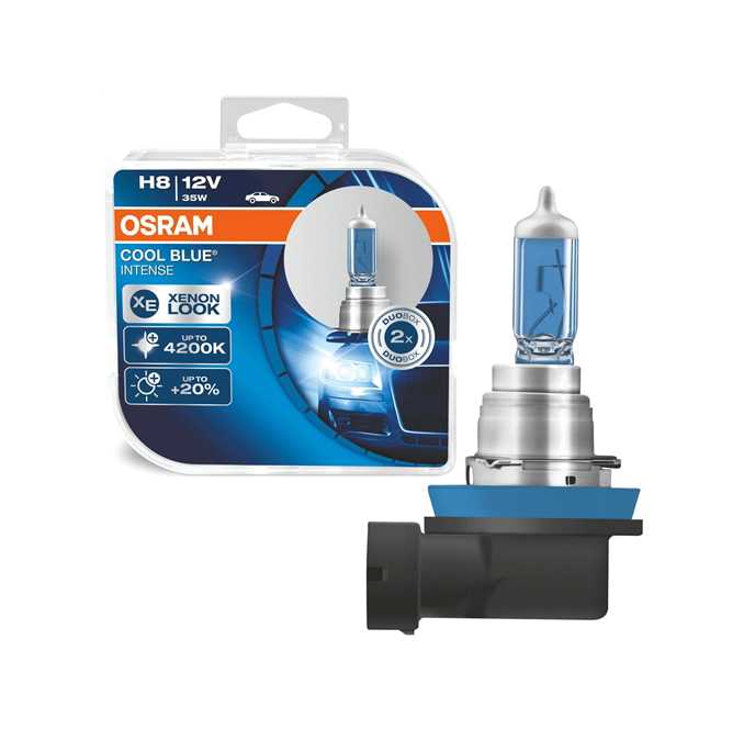 Lâmpadas OSRAM H8 35W, luz branco-azul intenso, para efeito xénon.Melhor tecnologia de lâmpada com alto fluxo luminoso.Temperatura de cor: até 4200kVendido ao par.