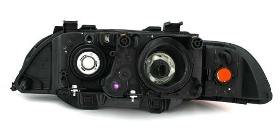 Óptica, adequada para BMW Série 5 E39, compatível 11/95-8/00 (carros sem Xenon). Acabamento: pisca amarelo. lâmpadas adequadas: H7 / HB3 (não incluído). Incl. motor para a regulação do farol eléctrico. Lado direito, do lado do passageiro.
