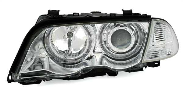 Ópticas angel eyes, adequadas para BMW série 3 E46 (apenas Limo + Touring), compatível 5/98-8/01 (apenas para veículos sem Xenon). Cor: cromado. Incl. motores para nivelamento eléctrico. Incl. lâmpadas: H7/H7. Incl. Lâmpadas amarelas.Homologado.