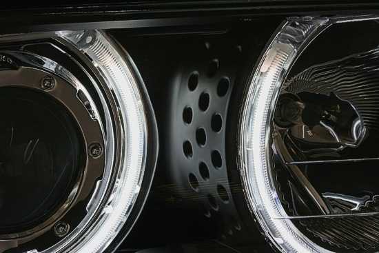 Ópticas angel eyes, adequadas para BMW série 3 E46 (apenas Limo + Touring), compatível 5/98-8/01 (apenas para veículos sem Xenon). Cor: preto. Incl. motores para nivelamento eléctrico. Incl. lâmpadas: Philips H7/H7.Homologado.